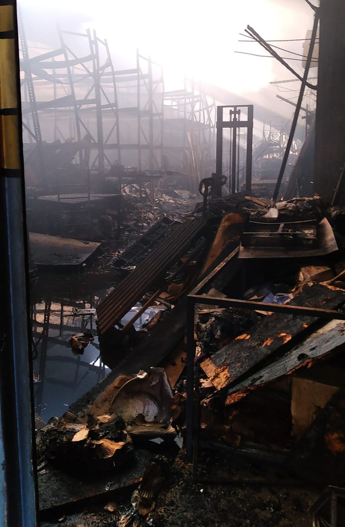 Según el informe primario de la Dirección Nacional de Bomberos se trata de un depósito de 1.200 metros cuadrados que tomó fuego en su totalidad, incluido un camión que estaba adentro.