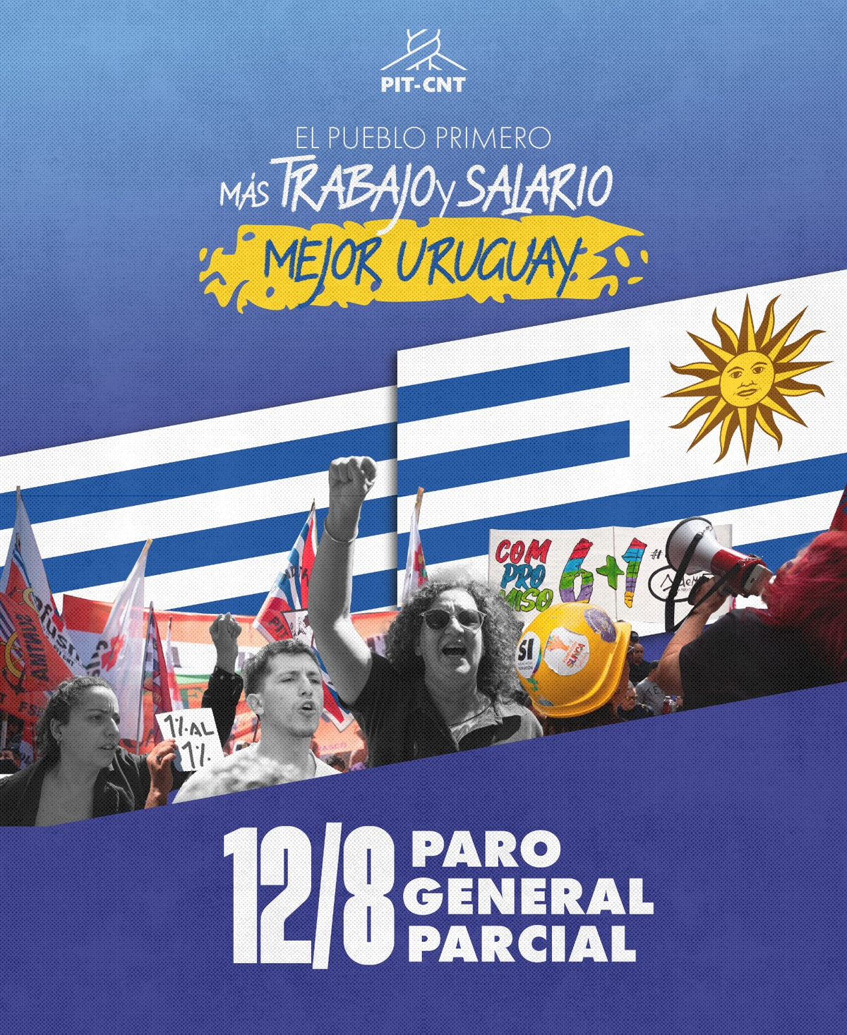 "Más trabajo y salario: mejor Uruguay. Por un presupuesto al servicio de los derechos de la gente. Por el fortalecimiento de las empresas públicas. Por un Uruguay sin pobreza infantil", señaló el PIT-CNT.