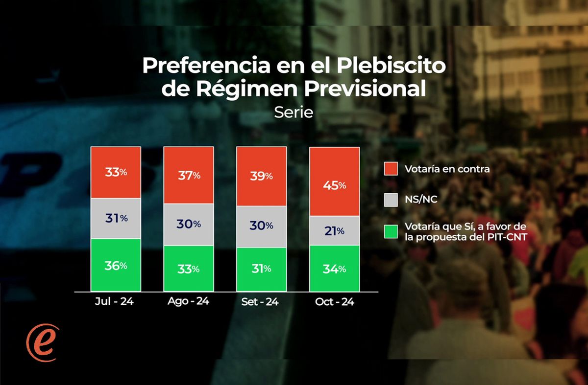 El plebiscito sobre el sistema previsional tiene una adhesión del 34% y un rechazo del 45%. Es decir, el apoyo actual está lejos del nivel requerido para su aprobación (50% + 1 de los votos).