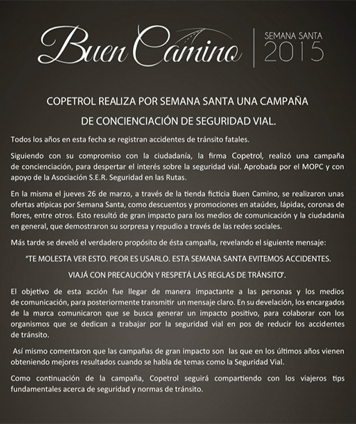 Esto generó una fuerte polémica en Paraguay, pero luego se supo que se trataba de una campaña de la empresa de combustibles Copetrol, junto con la Asociación Seguridad en las Rutas y con apoyo del Ministerio de Obras Públicas y Comunicaciones, informa el diario ABC de aquel país.