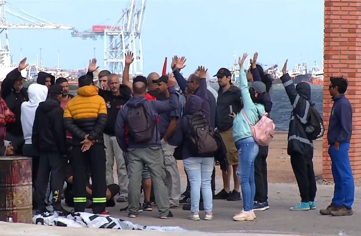 A las 12 los sindicalistas que cortaban en acceso al puerto votaron por levantar la medida (foto abajo) y minutos después los efectivos policiales despejaron el paso para que los camiones que esperaban en una larga fila comenzaran a entrar.