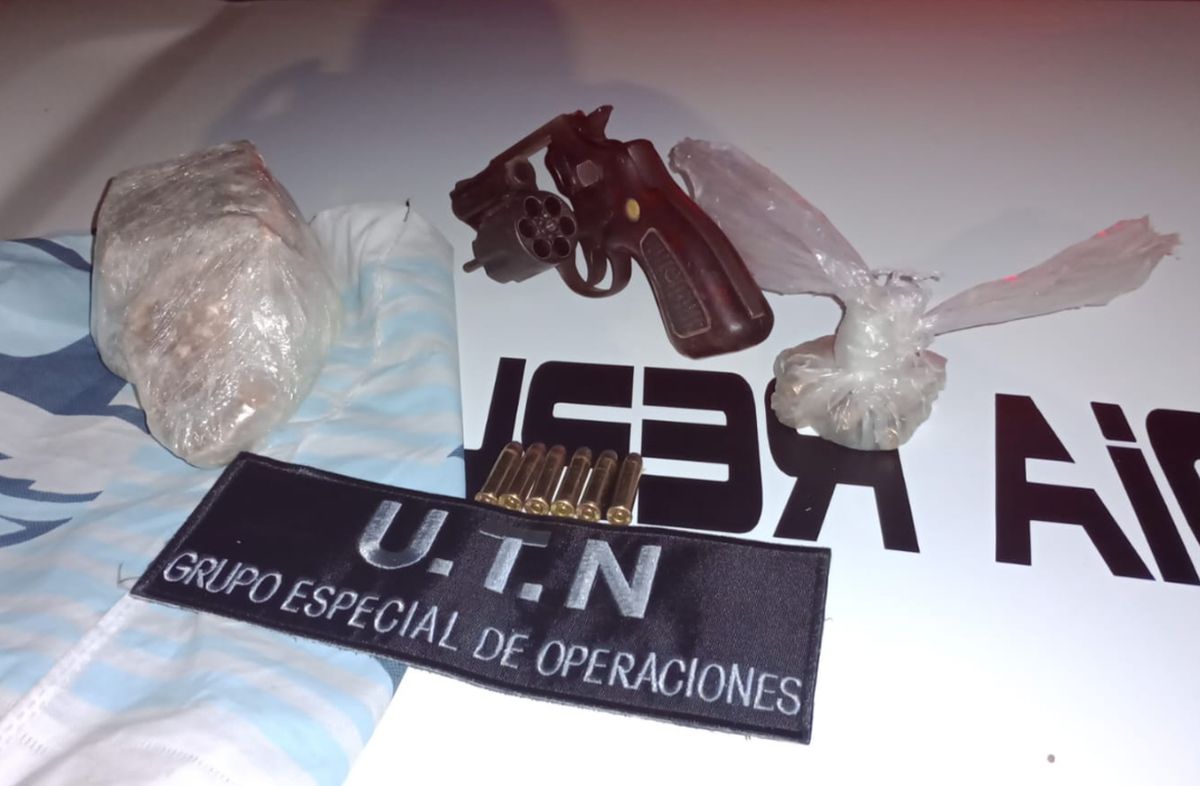 Policía detuvo a tres personas que circulaban en un auto con un revólver, 13 municiones y droga