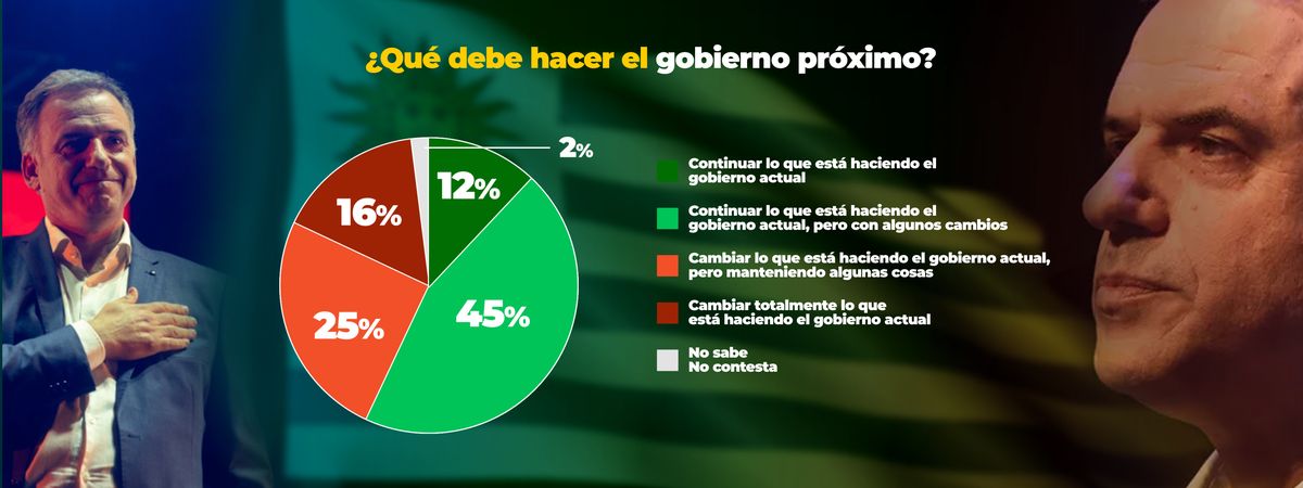 Por el contrario, la mayor parte de la población se divide entre posiciones más matizadas: 45% apoya la idea de “continuar lo que está haciendo el gobierno actual, pero con algunos cambios”, mientras que 25% opta por una versión igualmente moderada pero inversa: “cambiar lo que está haciendo el gobierno actual, pero manteniendo algunas cosas”.