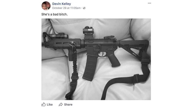 Amante de las armas, Kelley mostró su última adquisición en las redes sociales. Era un fusil de asalto Ruger AR, calibre 223 -el mismo que usan las fuerzas armadas de ese país- al que llamaba de "puta mala".