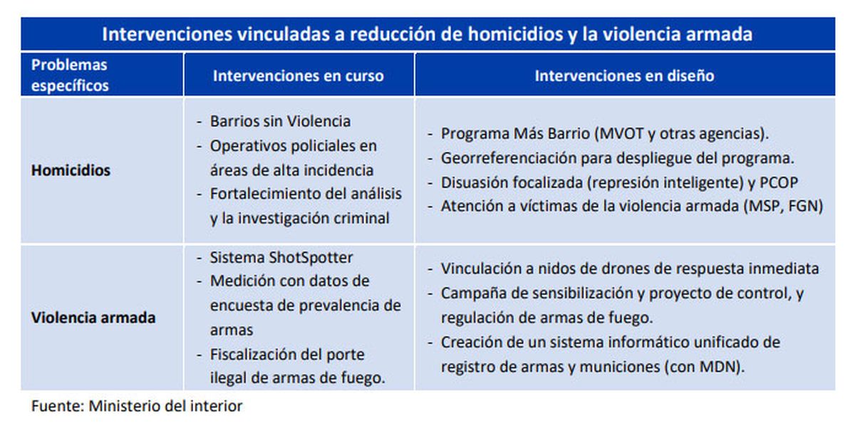En la exposición de motivos (fundamentos) que acompaña al proyecto de presupuesto, el Ministerio del Interior hace hincapié en las medidas que aplica y que planea ejecutar para reducir la cantidad de homicidios y la violencia armada en el país.