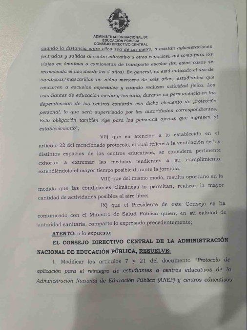 Lea la resolución completa de la Administración Nacional de Educación Pública (ANEP)