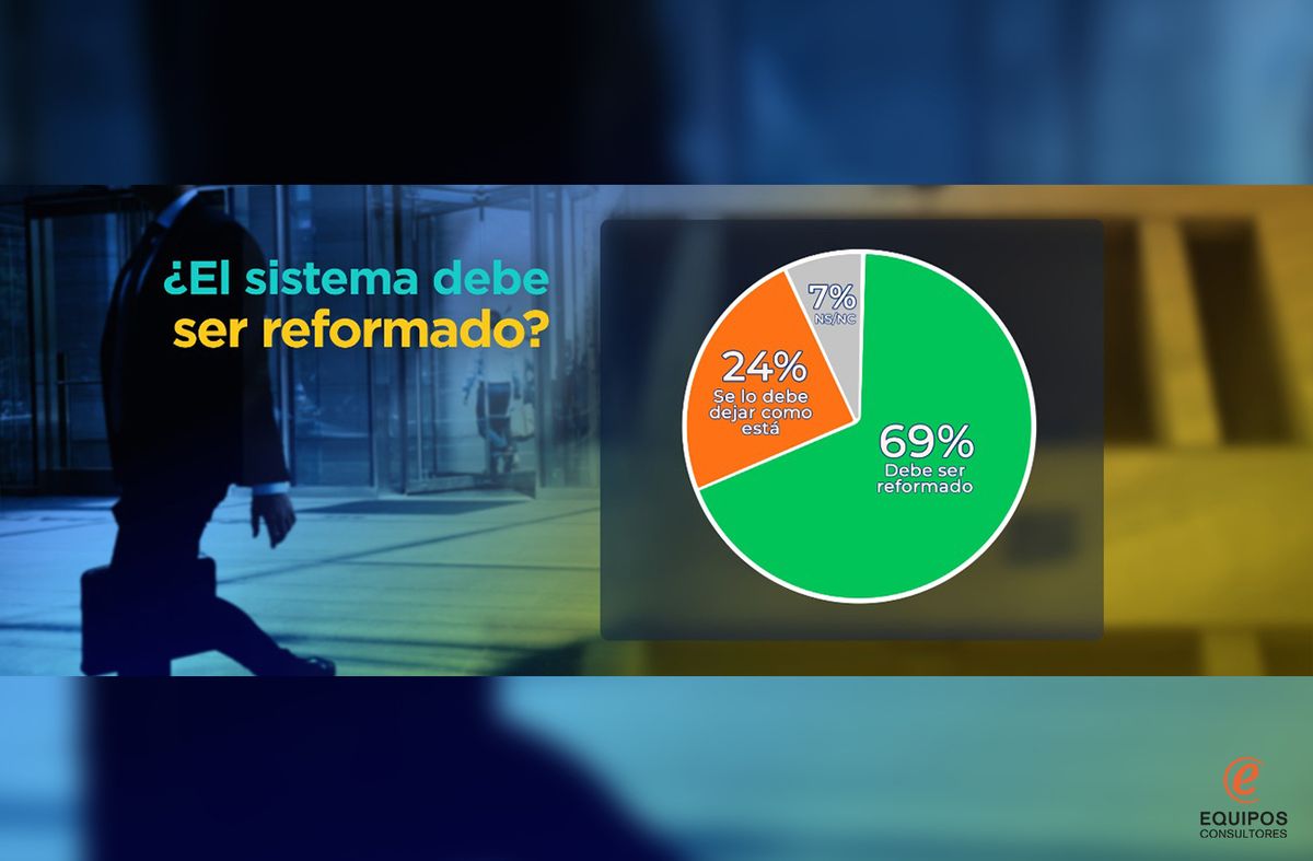 En primer lugar, Equipos Consultores preguntó una opinión general sobre si el sistema debería ser reformado o debería mantenerse como está actualmente. Ante esta consulta una amplia mayoría de casi siete de cada diez uruguayos (69%) afirmó que el sistema debería ser reformado y una cuarta parte de la población (24%) que debería dejárselo como está.