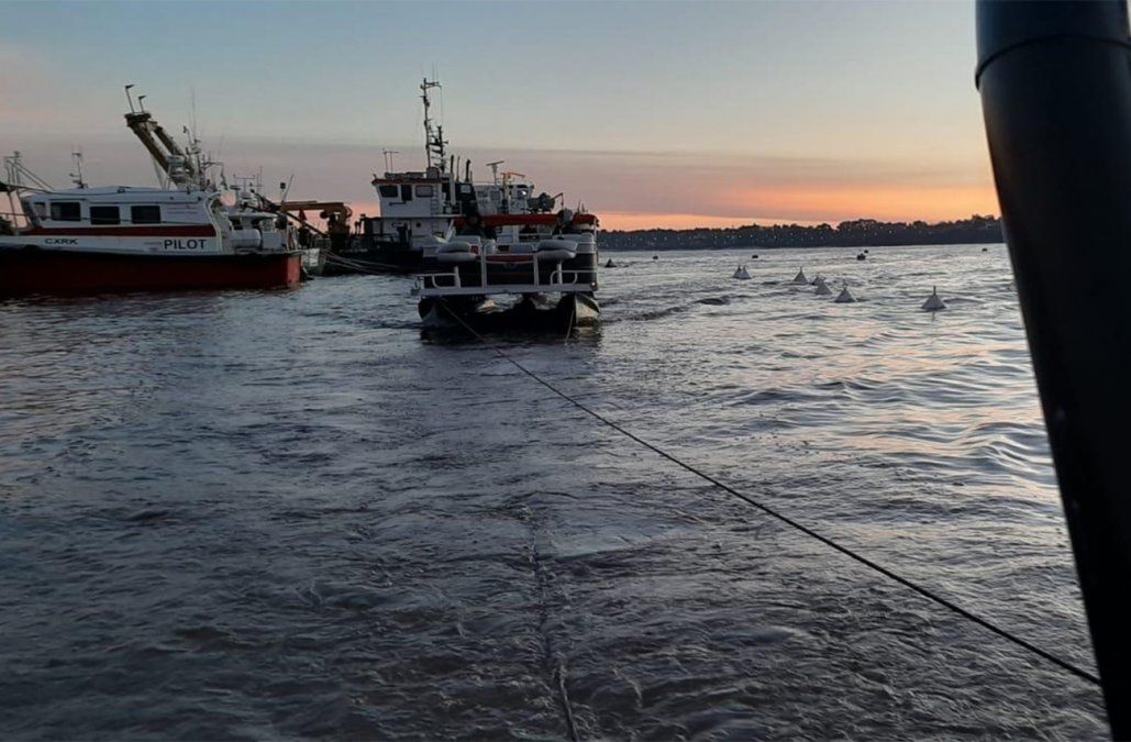 Sobre las 06:45 horas se hizo contacto con la embarcación y se comenzó con el remolque hacia el puerto deportivo de Colonia, escoltado por las embarcaciones de ADES.
