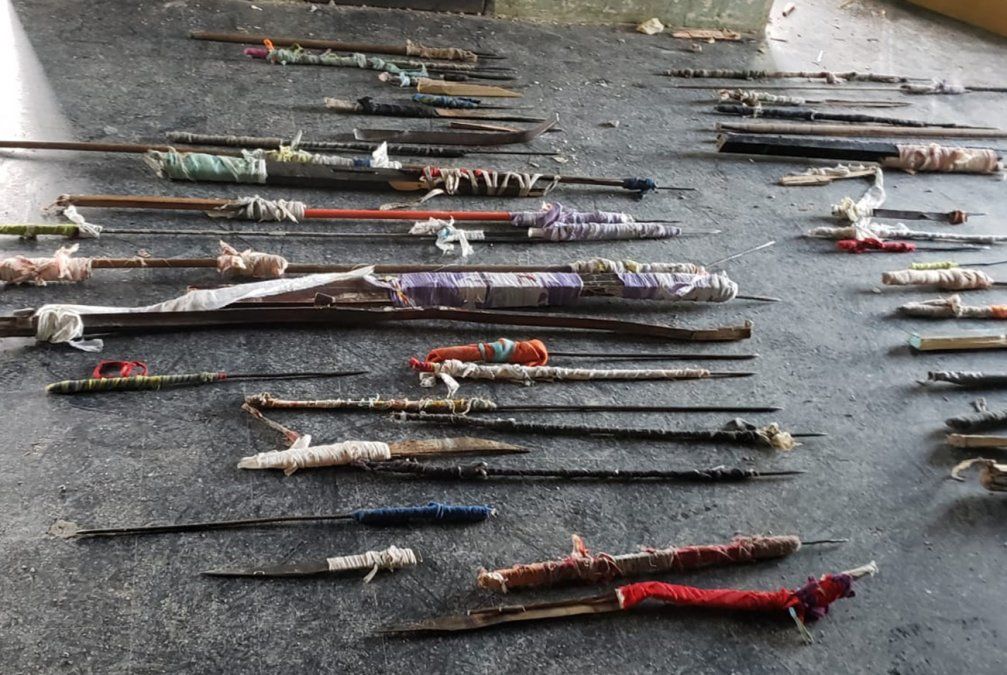 Imágenes divulgadas por la Policía muestran varios cortes carcelarios incautados en el lugar.