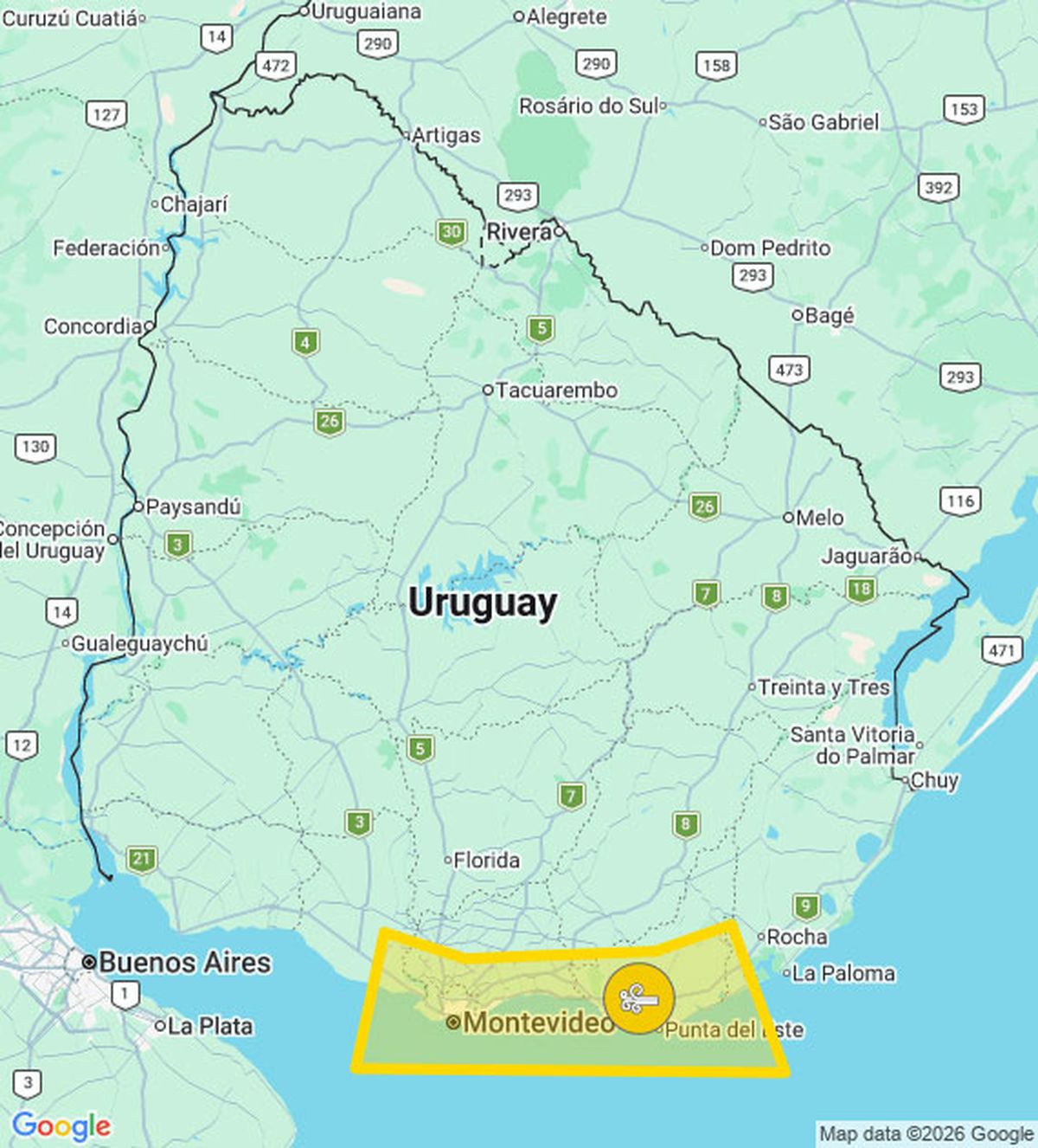 El Instituto Uruguayo de Meteorología (Inumet) mantiene una advertencia amarilla por vientos fuertes y persistentes en la costa sur del país, desde San José (en parte), Montevideo, Canelones, Maldonado y parte de Rocha, (ver mapa).