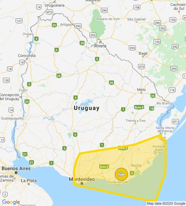 El Instituto Uruguayo de Meteorología (Inumet) publicó una alerta amarilla por vientos fuertes y persistentes para el sur y sudeste del país, desde Montevideo a Rocha.