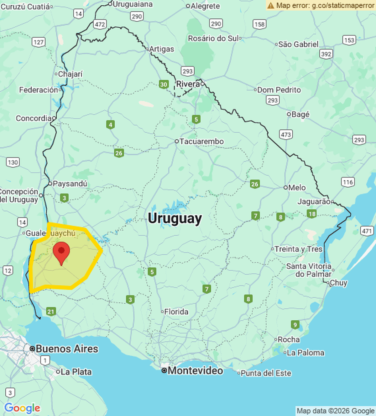 Las principales localidades bajo advertencia hasta el momento son de Río Negro -Fray Bentos, Los Arrayanes y Nuevo Berlín- y Soriano -Agraciada, Chacras de Dolores, Dolores, Egaña, Mercedes, Palmitas, Risso y Villa Soriano-.
