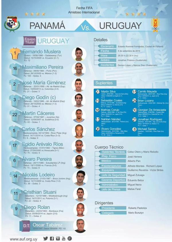El equipo titular de Tabárez va con Muslera, Maxi Pereira, Josema, Godín y Cáceres; Sánchez, el Cacha, Palito Pereira, Lodeiro, Stuani y Rolan.