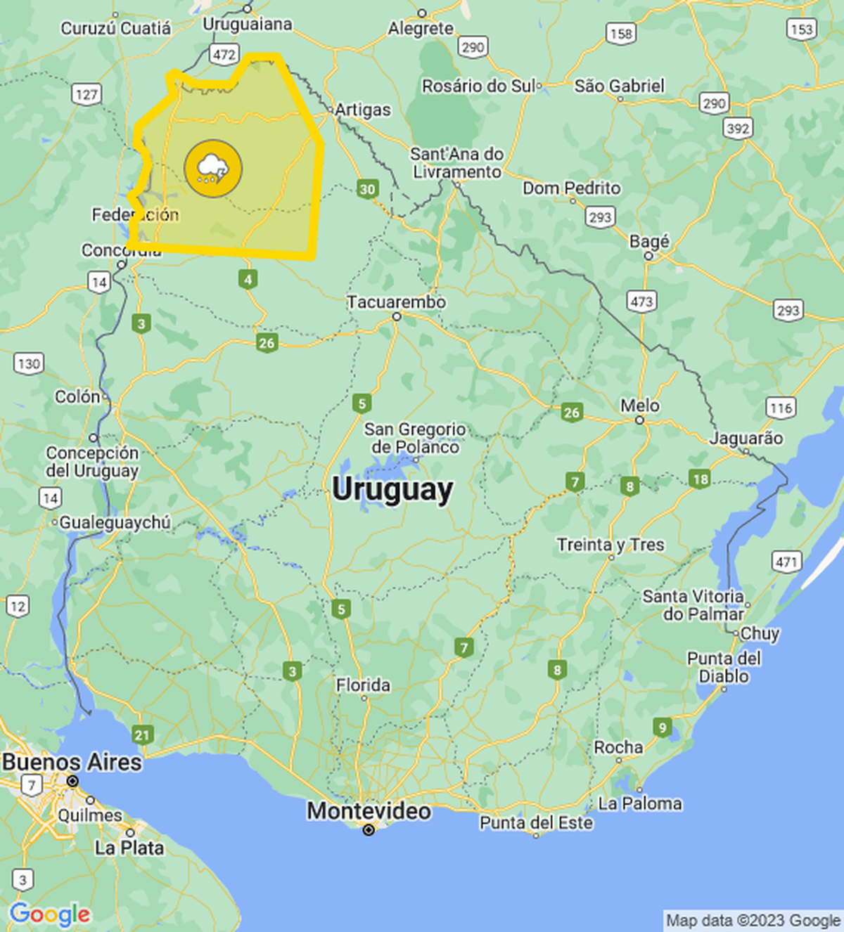 Salto y Artigas están bajo alerta amarilla de Inumet por tormentas fuertes