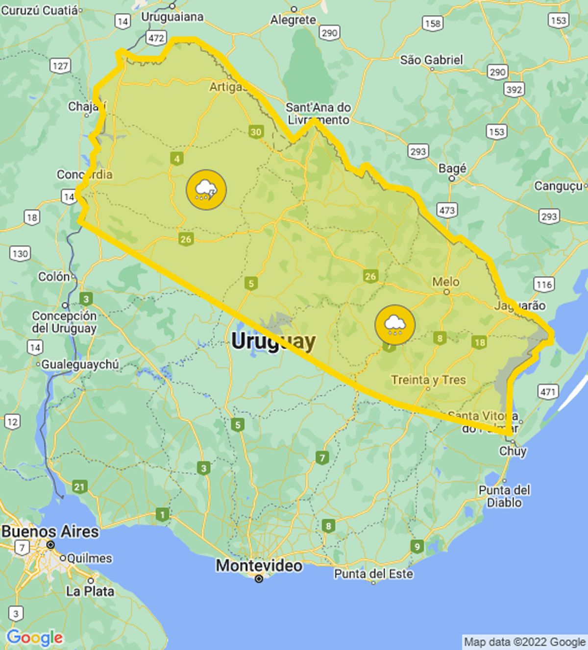Meteorología publica una nueva alerta amarilla por tormentas fuertes y lluvias intensas que en la mañana de este miércoles alcanza a la zona norte, centro, noreste y este del país.