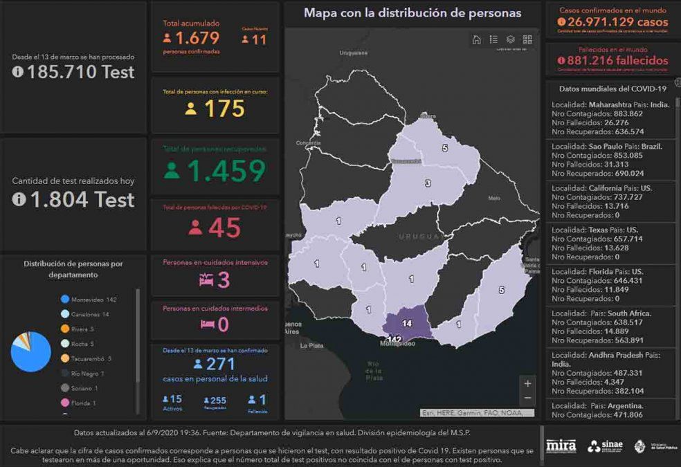 El último informe del SINAE presenta una nota: "ayer se reportaron 1659 casos positivos confirmados. Hoy se reportan 11 casos nuevos y un total de 1679 casos positivos confirmados. La diferencia se explica porque 1 transportista dio positivo y volvió a su país".