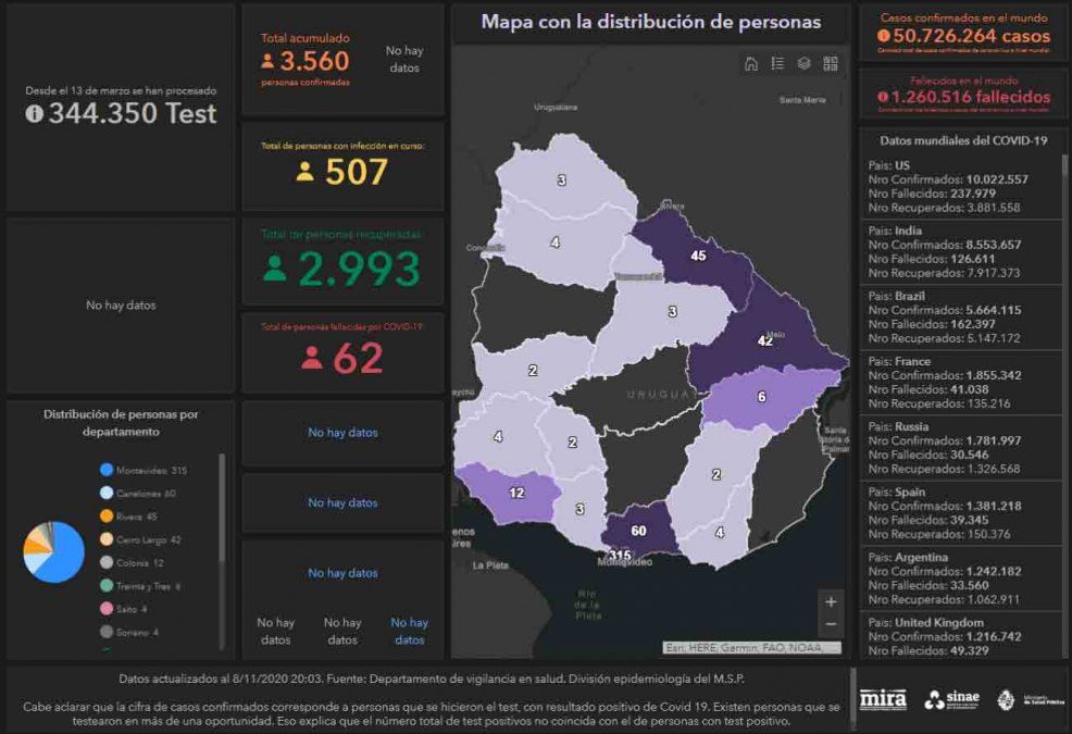 Según el último informe epidemiológico del Sistema Nacional de Emergencias (SINAE) del total de casos positivos acumulados 2.993 personas se recuperaron y 62 pacientes fallecieron.