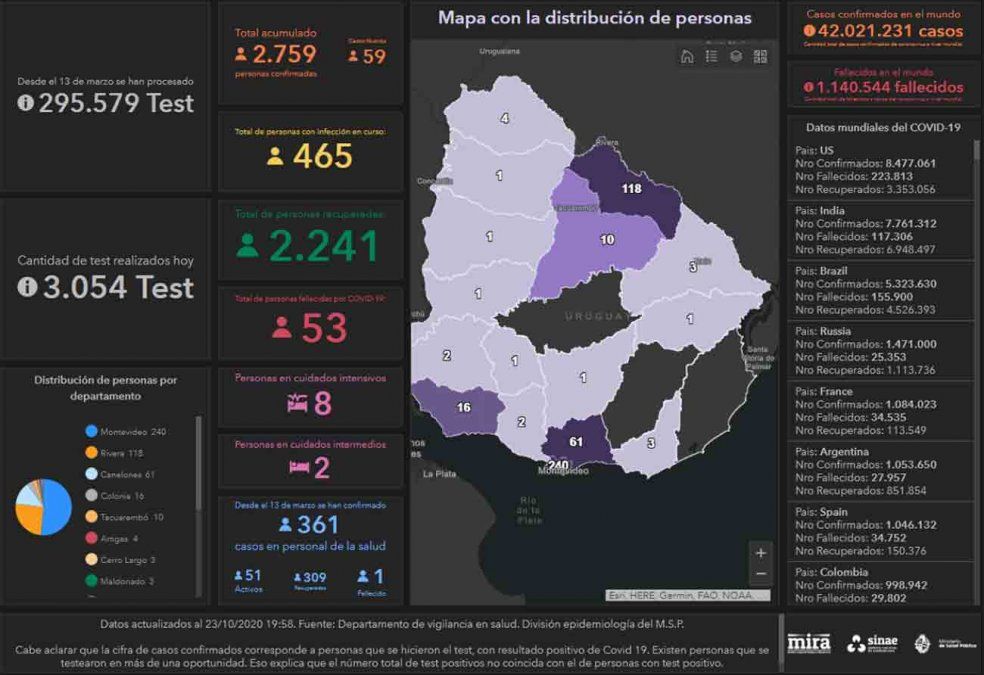Montevideo sigue siendo el departamento que más casos nuevos reportó; hay ocho pacientes en CTI y dos en intermedio.