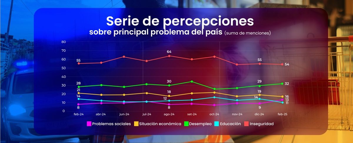 Seguridad y empleo se mantienen a la cabeza de los problemas del país