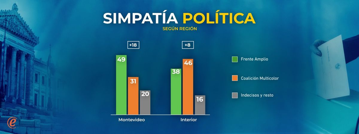 El análisis según región geográfica confirma la permanencia de un clivaje ya muy conocido. El Frente Amplio es mayoría en la capital del país, mientras que la Coalición Multicolor tiene preeminencia en el interior.