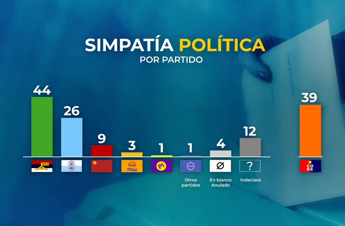 Si las elecciones fueran hoy, ¿a qué partido votarían los uruguayos? FA 44%, PN 26%, PC 9%, CA 3% y PI 1%