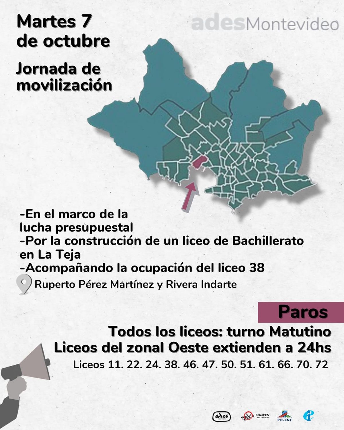 La Asociación de Docentes de Educación Secundaria (ADES) de Montevideo convoca a un paro este martes 7 que afectará los liceos de la capital, principalmente los centros educativos de la zonal oeste.