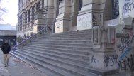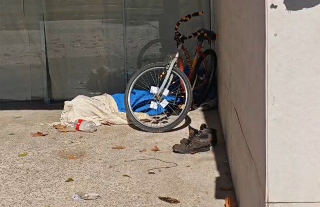 En diferentes momentos puede encontrarse maderas, nylon, cartones bloqueando la entrada, y que en algún momento sirven o sirvieron a personas en situación de calle que duermen allí.