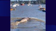 El elefante marino volvió al agua en la mañana de este miércoles; en la madrugada del domingo salió hacia el club y quedó en un lugar que impedía acceder a las instalaciones. Mirá el video.