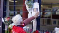 Junto a la reja que da hacia la calle, hinchas han colocado camisetas, banderas y flores, en forma de ofrenda.