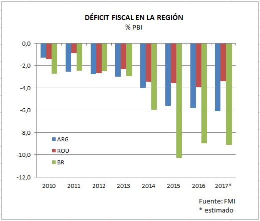 En Brasil, el escenario era el de una expansión exagerada, que quedó expuesta cuando cayeron los precios externos. Los norteños entraron en una grave crisis fiscal que –sumada a la crisis política por los casos de corrupción- llevó a la destitución de Dilma Rouseff. La caída de los precios también pegó duro en Uruguay y el PBI se estancó. Pero la acumulación de inversiones y la expansión del consumo han permitido la recuperación en los últimos meses, lo que pone a Uruguay claramente arriba de Argentina y Brasil en su trayectoria del PBI.