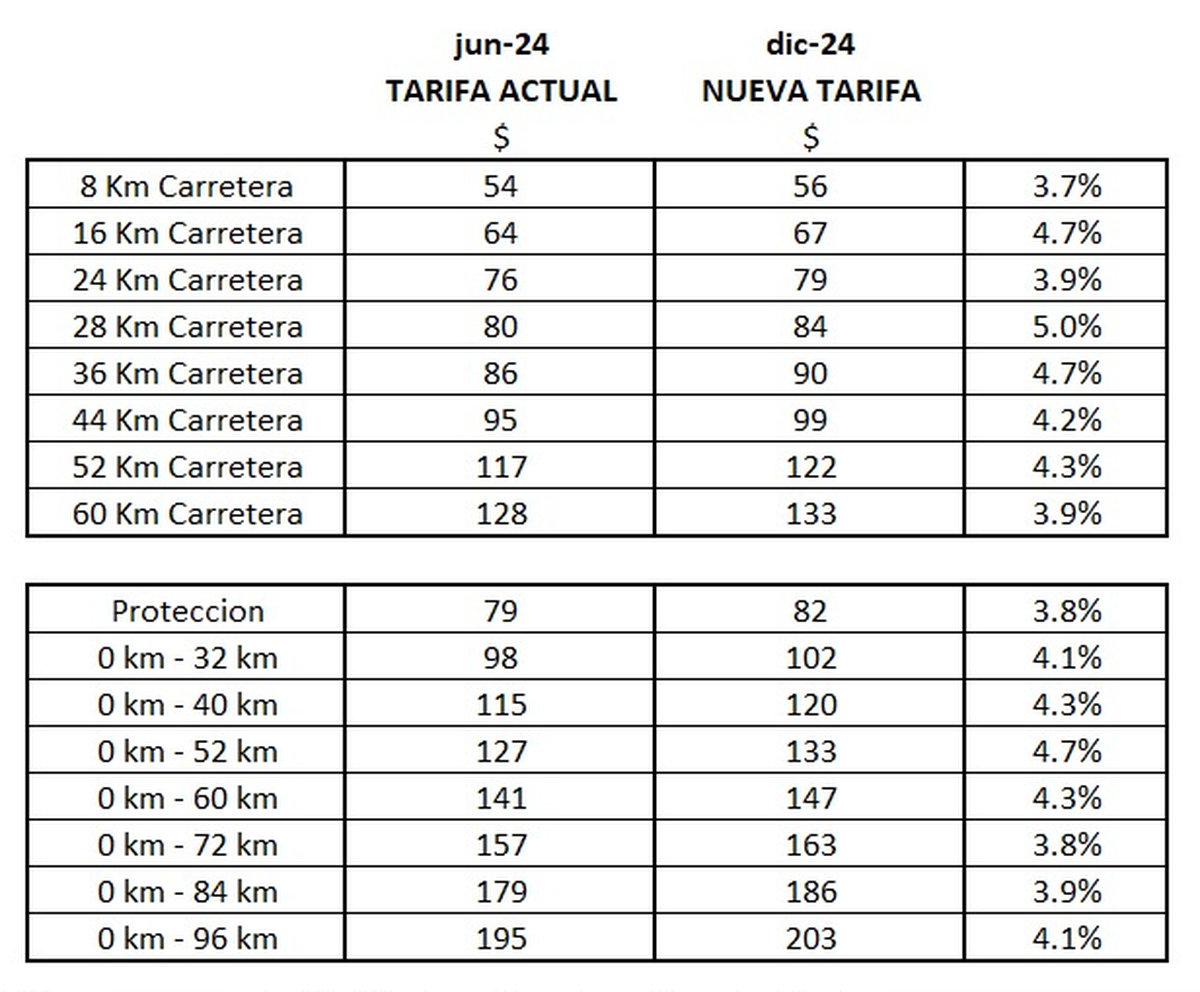 El ajuste corresponde a la modificación tarifaria semestral que se aplica para atender los incrementos salariales de los trabajadores del transporte.