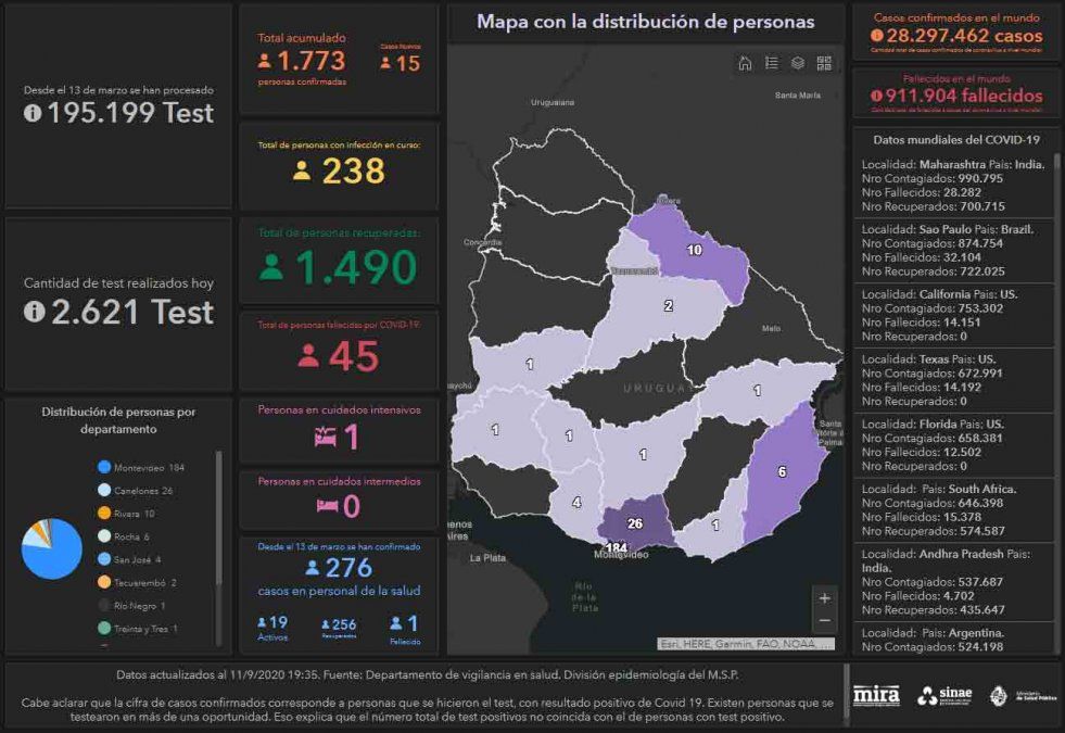 El SINAE emitió una nota en su último informe: "ayer se reportaron 1759 casos positivos confirmados. Hoy se reportan 15 casos nuevos y un total de 1773 casos positivos confirmados. La diferencia se explica porque 1 ciudadano extranjero viajero dio positivo y volvió a su país".