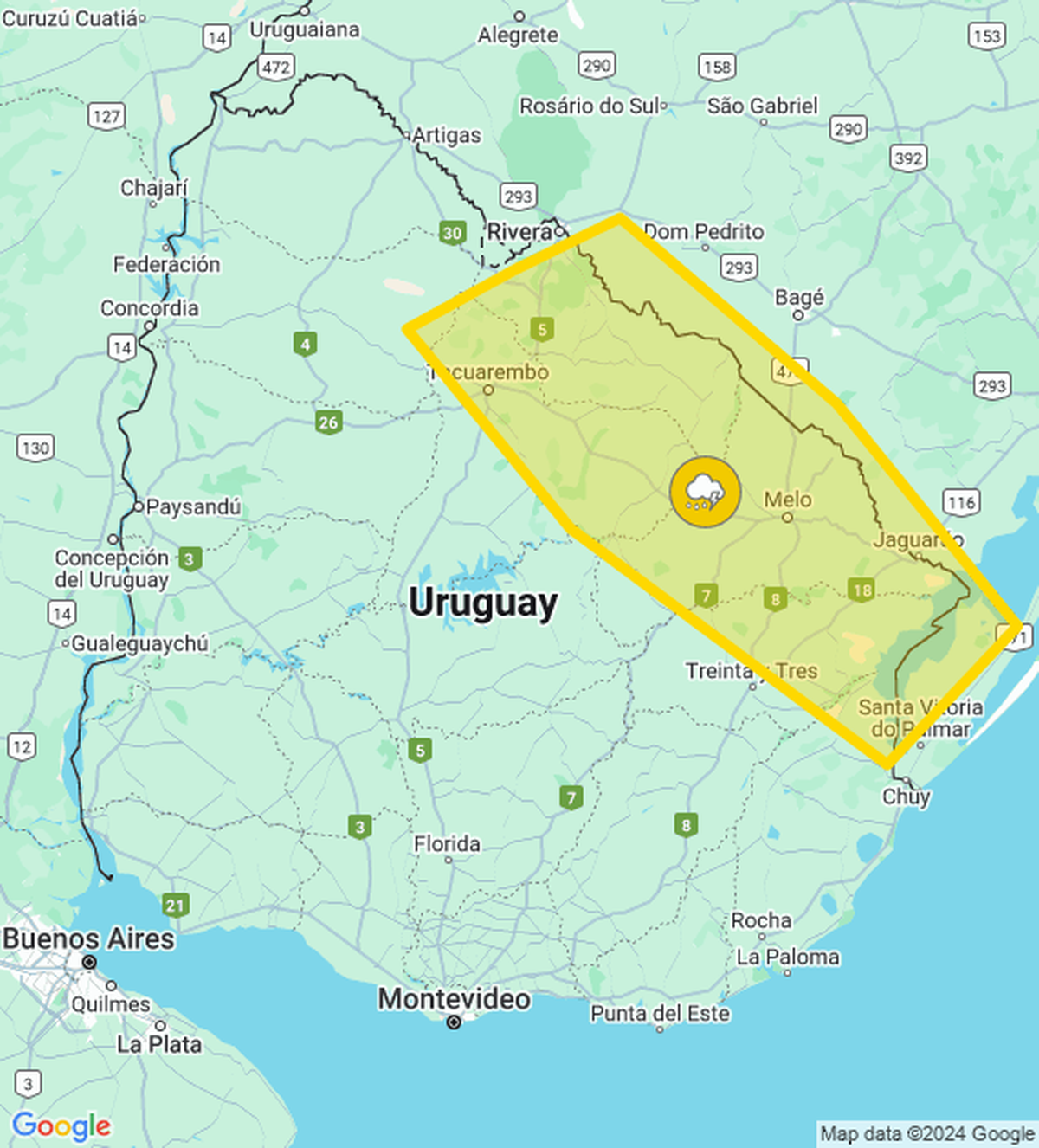 Meteorología actualizó la advertencia por tormentas puntualmente fuertes y lluvias abundantes; afecta a 3 departamentos