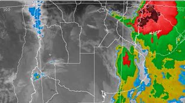 En el litoral oeste y en el norte había tormentas, algunas intensas, con mucha lluvia. En el sur cielo cubierto con probabilidad también de tormentas, lluvia y viento fuerte.
