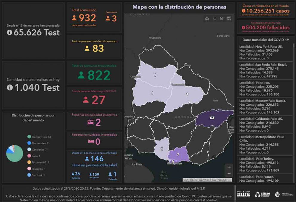 Este lunes Uruguay sumó tres casos nuevos de coronavirus covid-19 lo que da una cifra total de 932 casos positivos acumulados desde que se declaró la emergencia sanitaria en marzo. Todos corresponden al departamento de Treinta y Tres, y fueron identificados los contactos para mantener un estricto seguimiento.