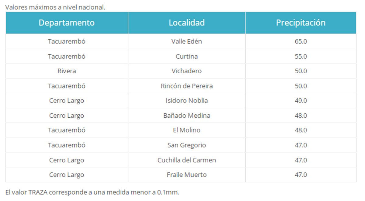 Estos son los máximos registros en Tacuarembó, Rivera y Cerro Largo: