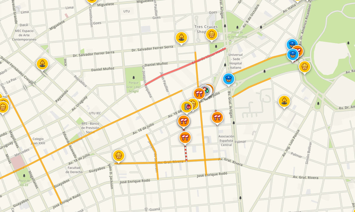 El tránsito está siendo desviado en toda la zona, desde el Obelisco. Hacia el Centro, es posible tomar 18 de Julio solo después de Juan Paullier. La vía de desagote de tránsito es Colonia. Desde el Parque Batlle ya hay corte en la vía que llega hacia el Obelisco.