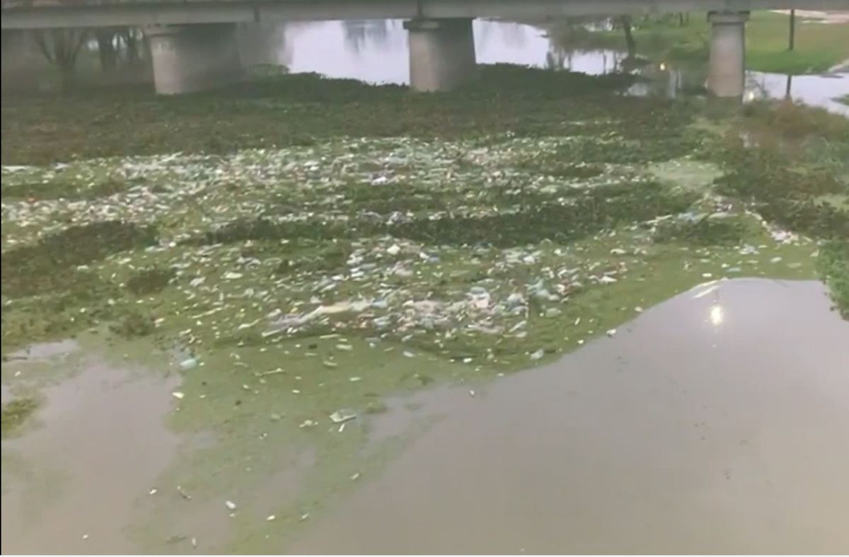 Personal de la Intendencia de Cerro Largo y vecinos limpiaron el arroyo Conventos. Se había formado una isla de plástico con decenas de kilos de basura.