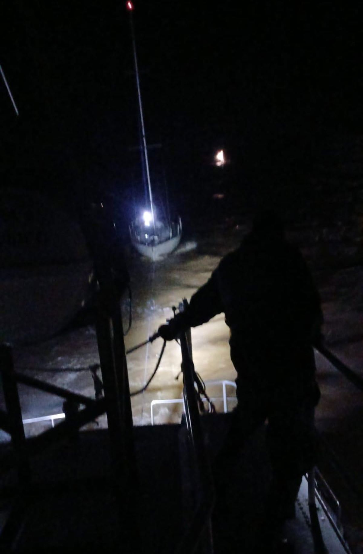 El velero debió fondear frente a la playa el Calabrés, en Colonia, el fuerte viento y oleaje que había en la zona. El temporal hizo que el fondeo cediera y los tripulantes comenzaran a descompensarse, por lo que hicieron el llamado de auxilio.