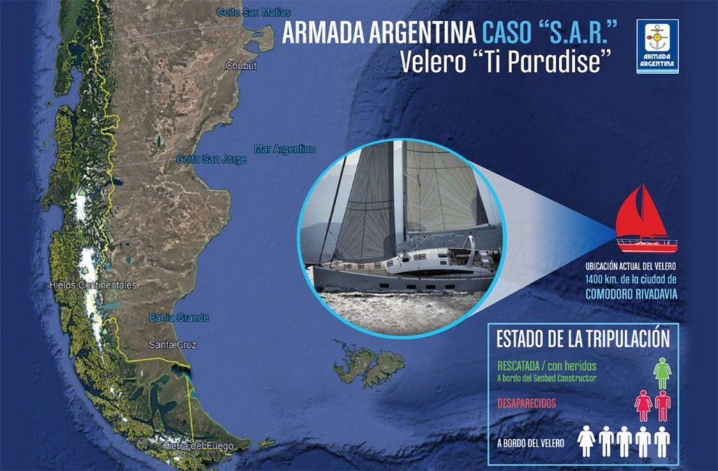 De los ocho tripulantes que viajaban en el velero Ti Paradise, cinco (cuatro hombres y una mujer) fueron encontrados a salvo en la embarcación. Un sexto pasajero estaba herido.