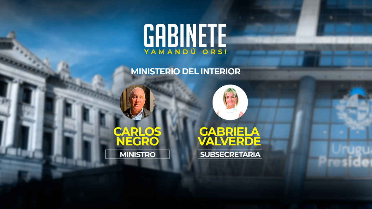 El ministro del Interior será el exfiscal de Homicidios Carlos Negro, muy cercano al prosecretario designado y exfiscal de corte Jorge Díaz. Negro es hijo de un exdiputado frenteamplista, electo al retorno de la democracia por la lista 99 de Montevideo. "En 32 años en la Fiscalía, siempre he respaldado a la Policía", dijo.