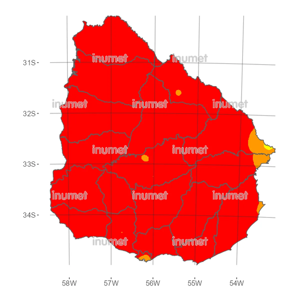 La situación de riesgo de incendios es muy alta en Uruguay. Según el último informe de Bomberos, que es del mediodía de este domingo, casi todo el país se encuentra en riesgo rojo. Es muy propenso que el fuego se propague con rapidez.