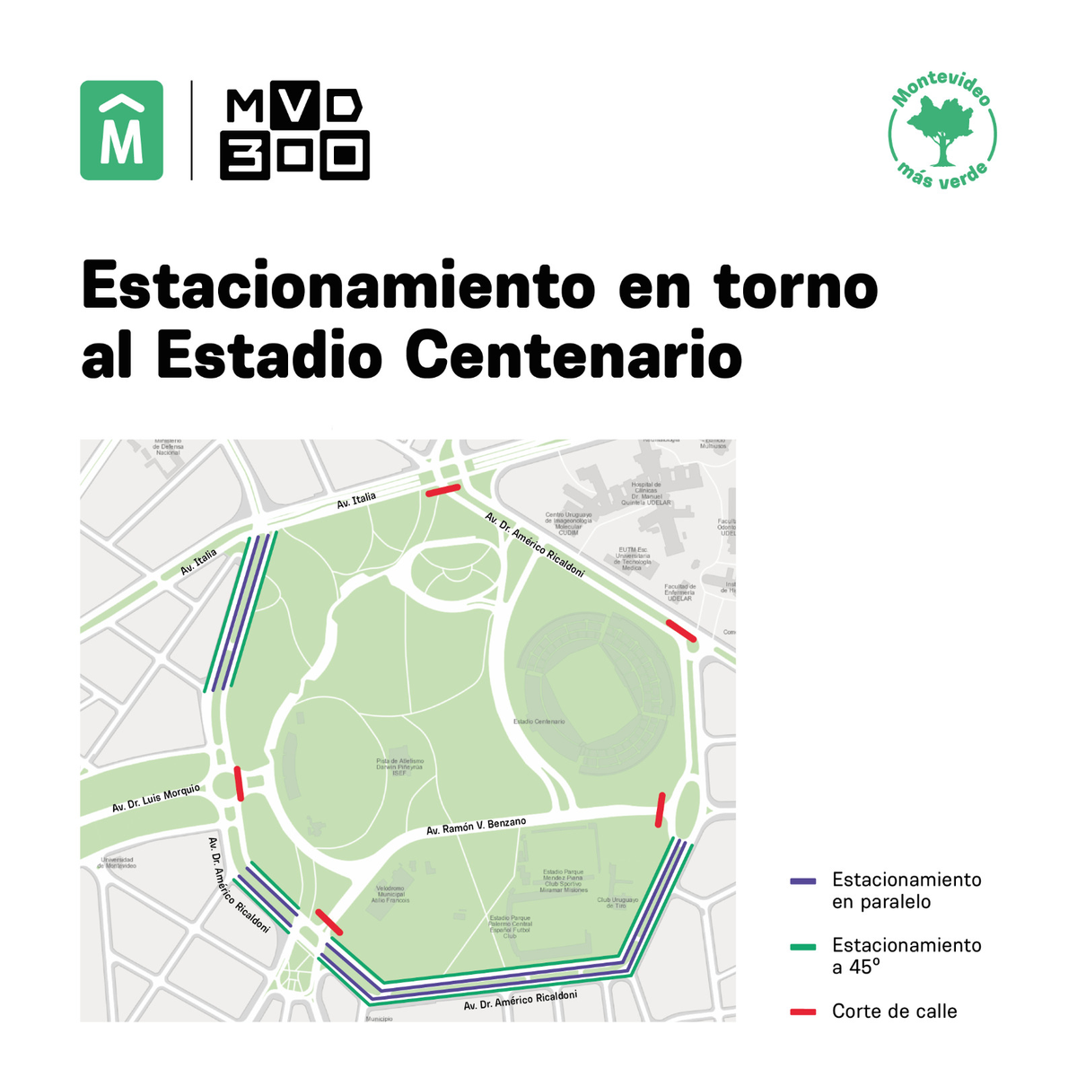 El tránsito estará afectado entre avenida Italia, Rcialdoni, Belzano y Navarro. La Intendencia de Montevideo (IMM) recordó que está prohibido que vehículos estacionen en canteros, áreas verdes y veredas.