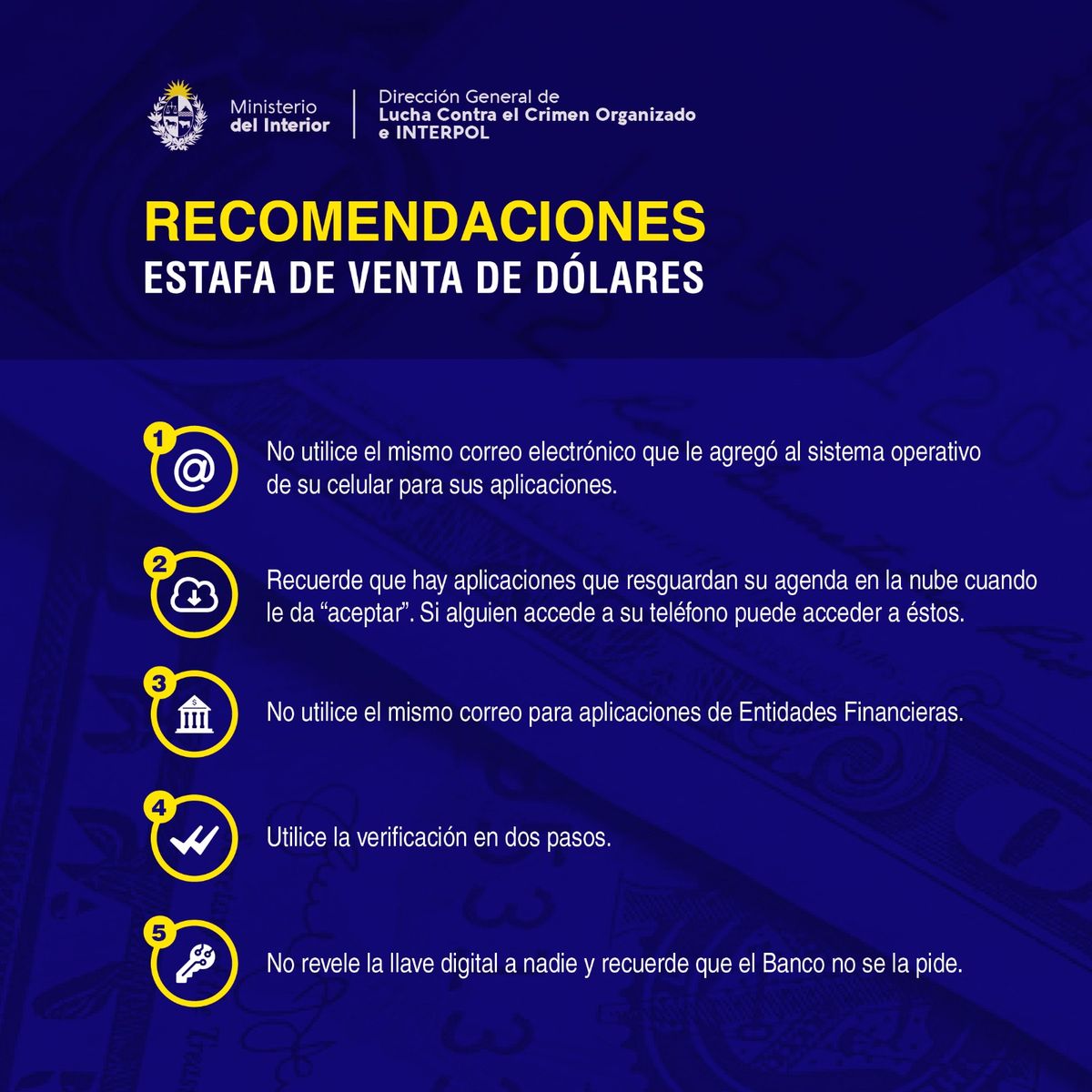 Se utilizaba la información de los contactos para cometer las estafas con un propuesta de supuesto cambio de dólares a un precio más conveniente.