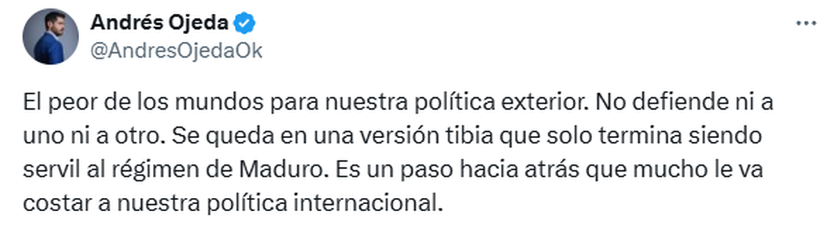 Por su parte, el dirigente del Partido Independiente, Pablo Mieres, expresó "mucha pena y rechazo" y aseguró que hay "falta de solidaridad del nuevo gobierno de nuestro país con el pueblo venezolano, desconociendo la voluntad popular que eligió a Edmundo González Urrutia como Presidente legítimo de ese país".