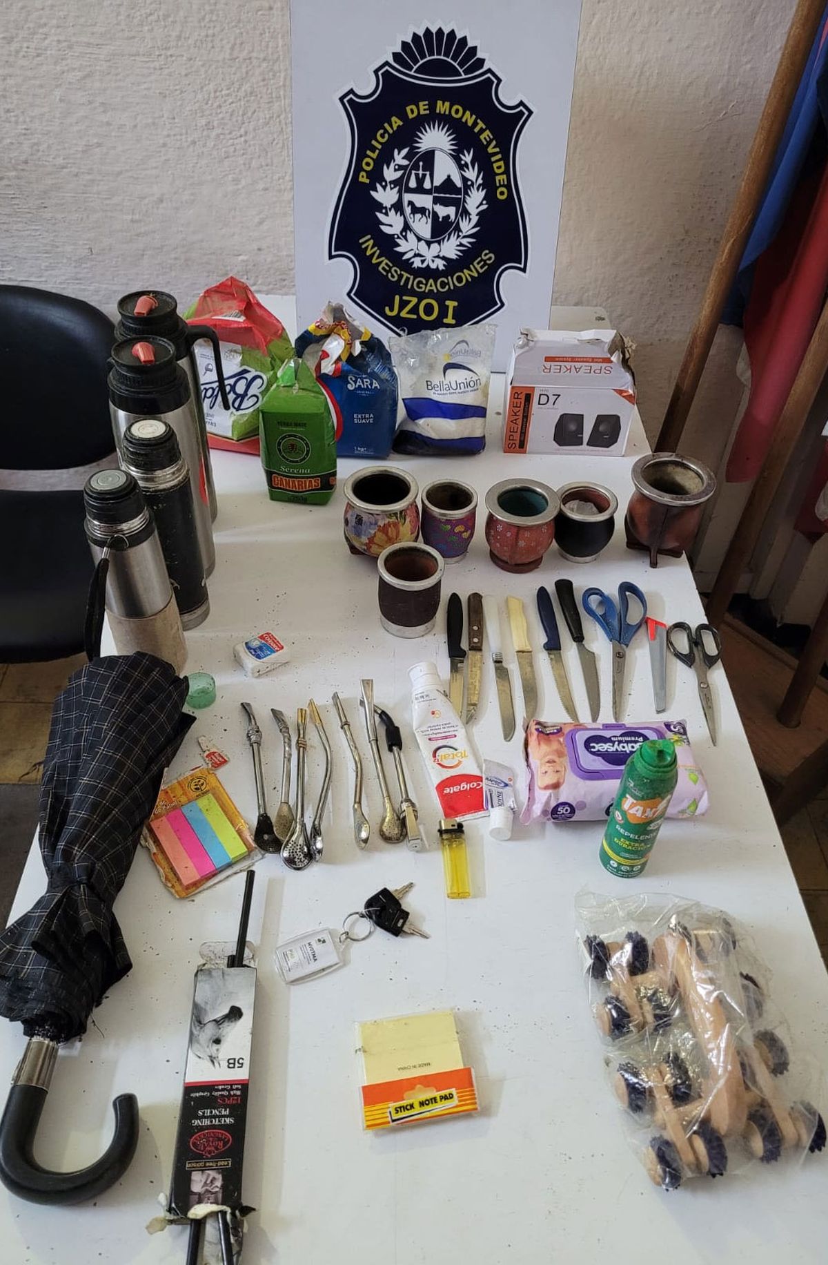 Un delincuente fue detenido por la Policía dentro de la Intendencia de Montevideo (IMM). En una bolsa llevaba termos, mates, bombillas, cuchillos, repelente de mosquitos y un masajeador.