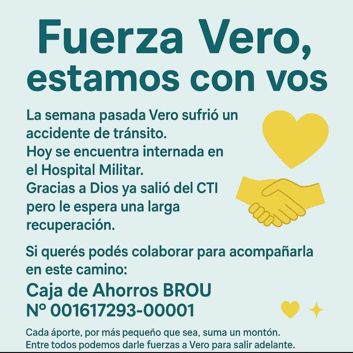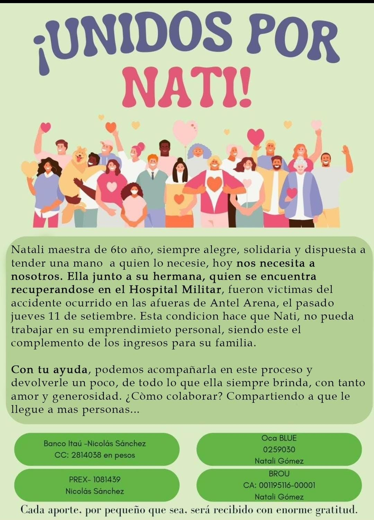 La campaña para ayudar a Naty es a través de la Prex 1081439 a nombre de Nicolás Sánchez. Para ayudar a Vero, por BROU 001617293-00001.